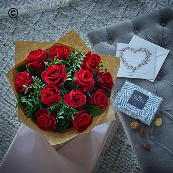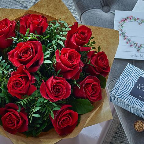 Want to woo someone with flowers? This is how you do it. We spiral no less than twelve long-stemmed red roses in the hand to create this magnificent bunch. It's then beautifully gift-wrapped and hand-delivered for a truly magical doorstep moment.