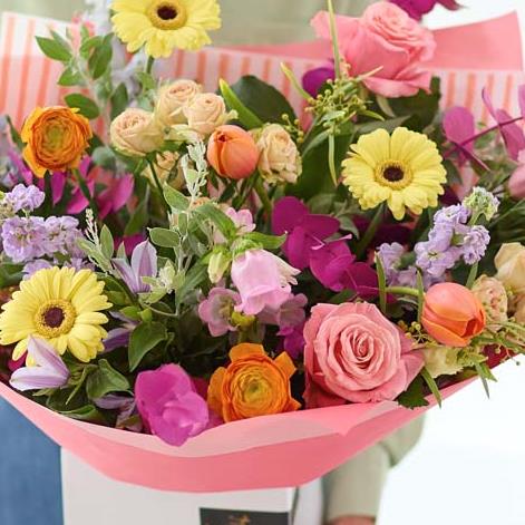 An exquisite arrangement of the freshest Mother’s Day flowers. Each bloom is chosen and exquisitely arranged by hand by a local florist to order – so no two bouquets are the same. This year our Mother’s Day designs are all about gorgeous pastels with pops of colour. Expect to see blooms in shades of baby pink, cream, and lemon with bursts of cerise and tangerine, and highlights of pale blue and lilac.