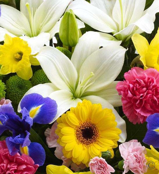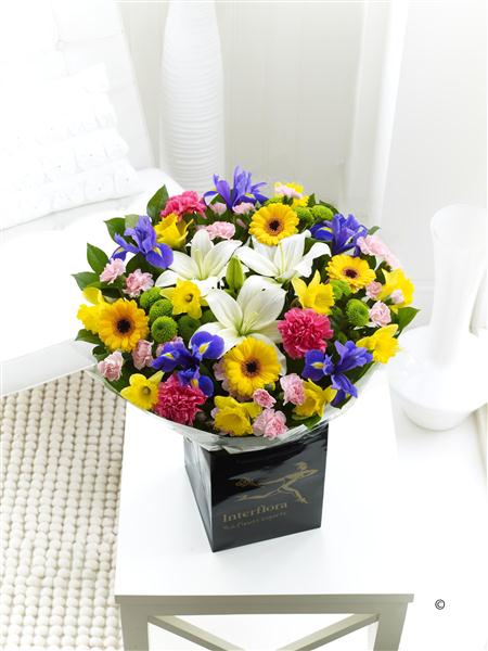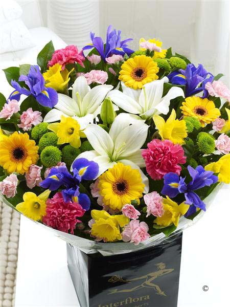 Featuring a large selection of fresh spring flowers, hand-tied and finished with spring gift wrap and ribbon.