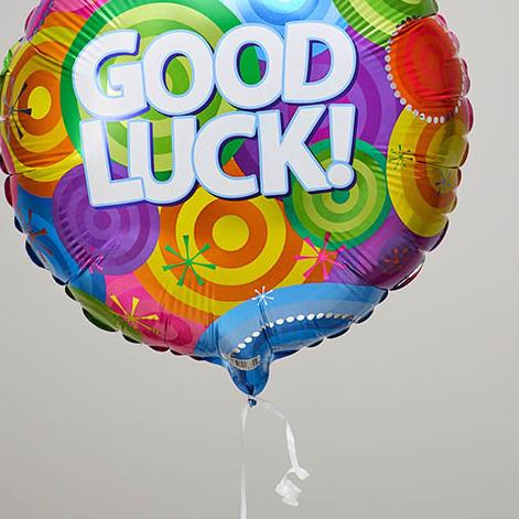 Wish them good luck and show them you’re thinking of them with this celebratory balloon in shiny silver and bright rainbow colours. The 45cm micro-foil balloon arrives filled with helium and tied to a weight with curling ribbon.