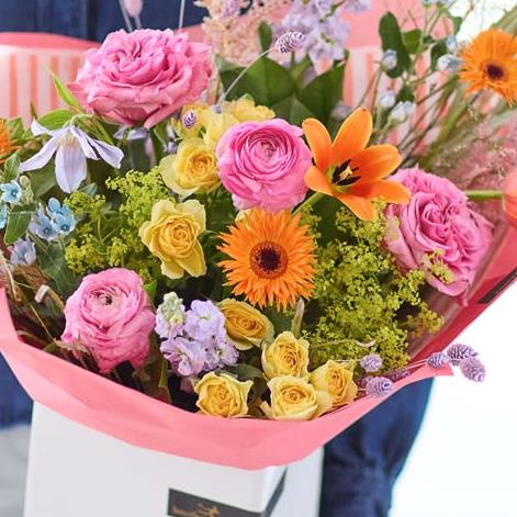 An exquisite arrangement of the freshest Mother’s Day flowers. Each bloom is chosen and exquisitely arranged by hand by a local florist to order – so no two bouquets are the same. This year our Mother’s Day designs are all about gorgeous pastels with pops of colour. Expect to see blooms in shades of baby pink, cream, and lemon with bursts of cerise and tangerine, and highlights of pale blue and lilac.