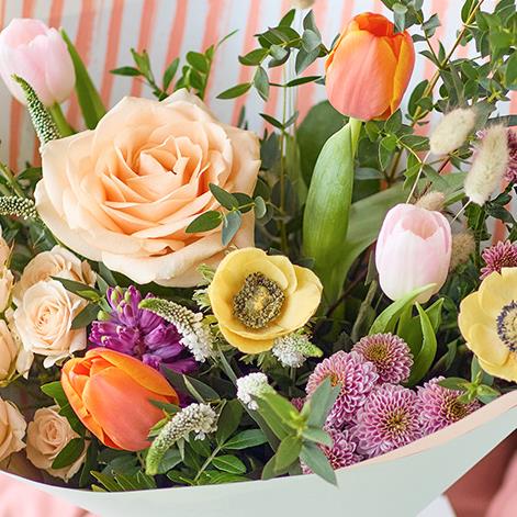 Please note that due to the seasonal availability of flowers it may be necessary to vary individual stems from those shown. Our skilled florists may substitute flowers for one similar in style, quality and value. Where our designs include a sundry item like a vase or basket it may not always be possible to include the exact item as displayed. If such an occasion arises we will make every effort to replace the item with a suitable alternative.